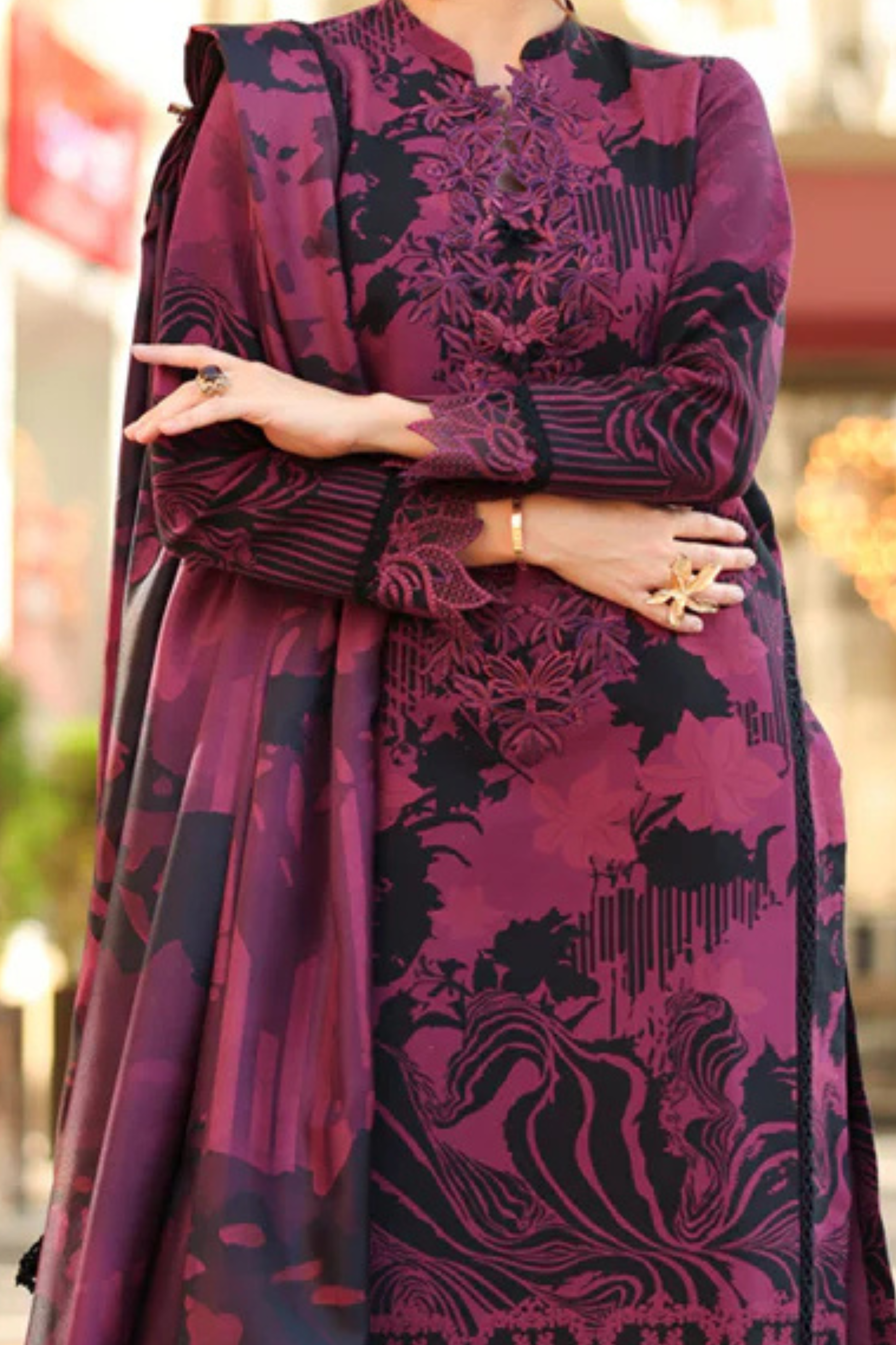 Dyed Organza Embroidered Front + Sleeve Border